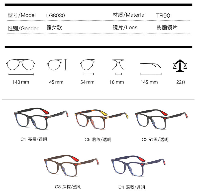 G8030 New Blue Light Blocking Glasses Tr90 Men Prescription Eyeglasses Frame Computer Protection Optical Glasses